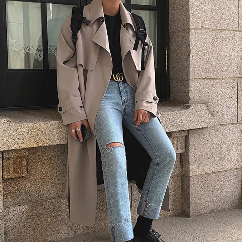 ミディアム丈ダブルブレストルーズコート C10002