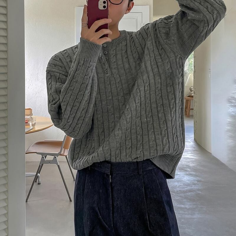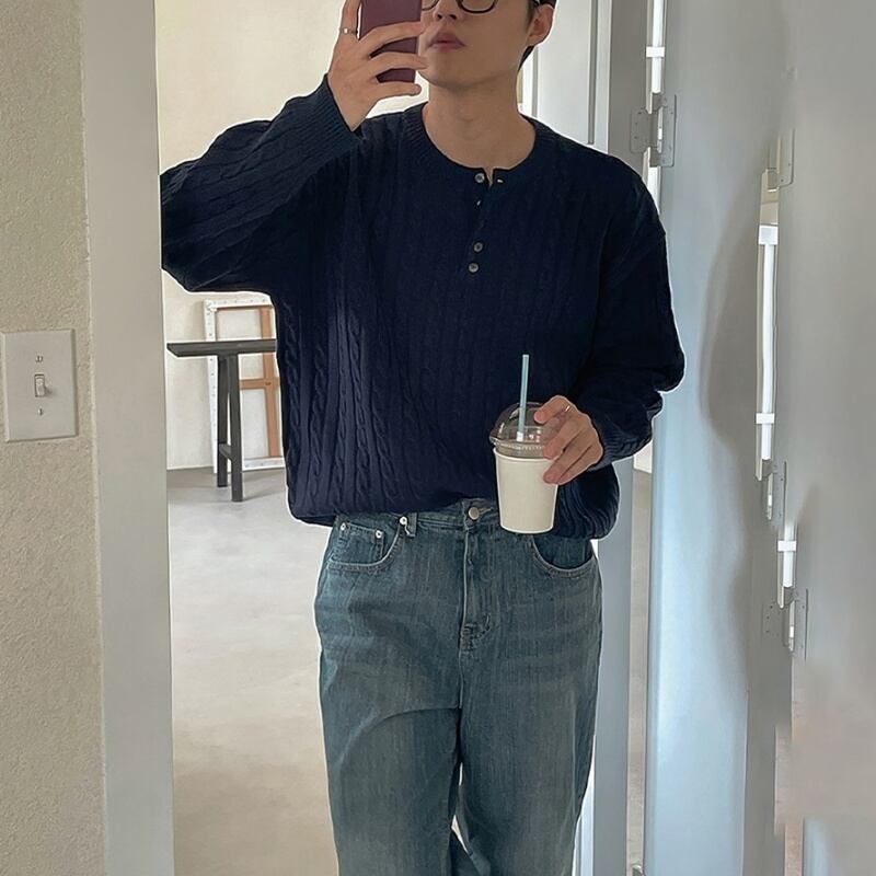 ケーブルヘンリーネックセーター C10075