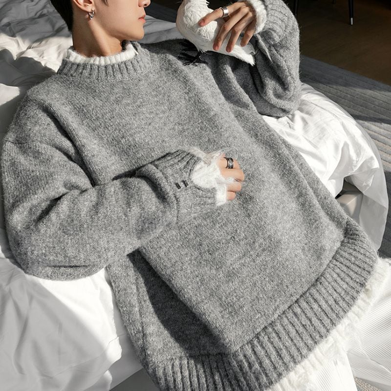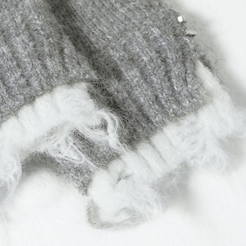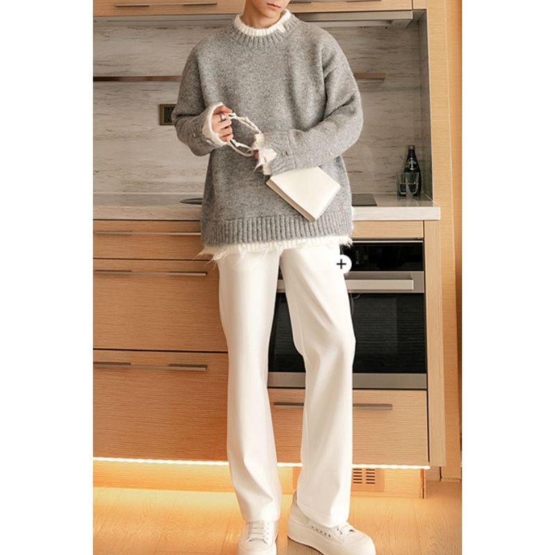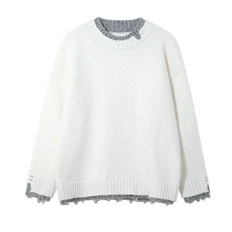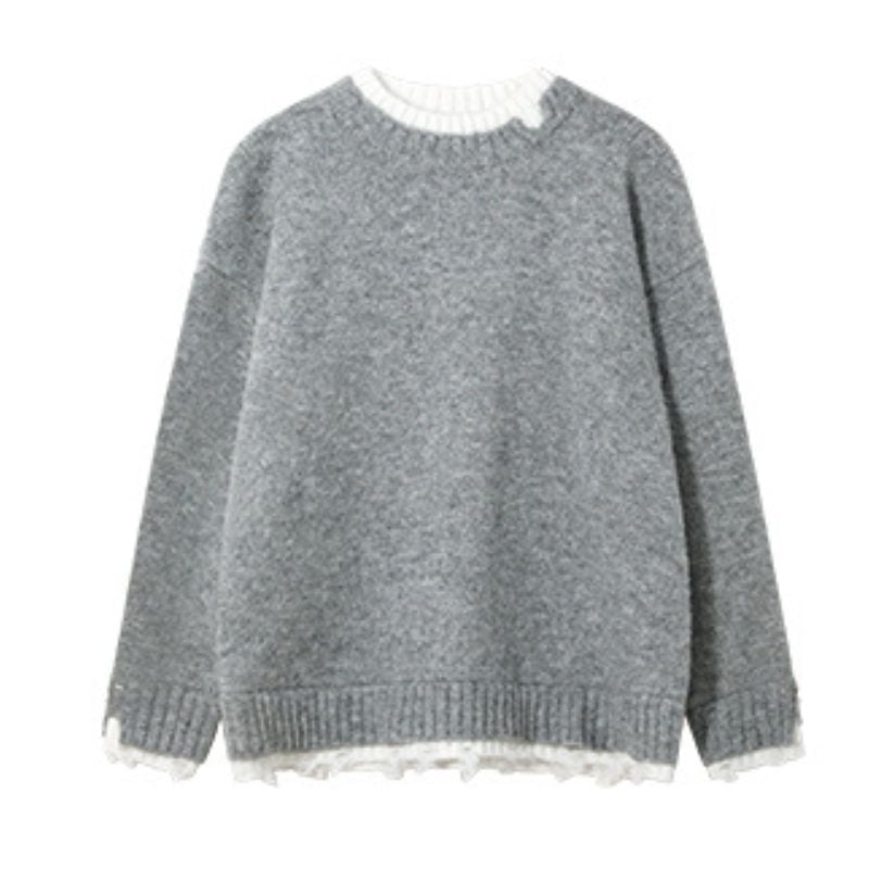 ダメージ加工ラウンドネック重ね着風ニット C10267