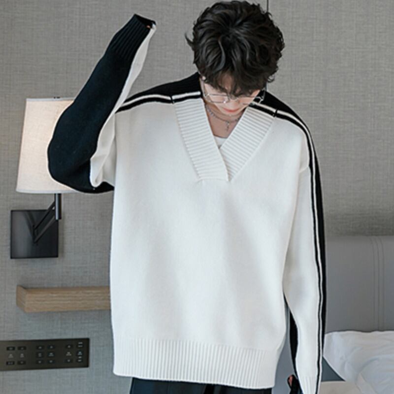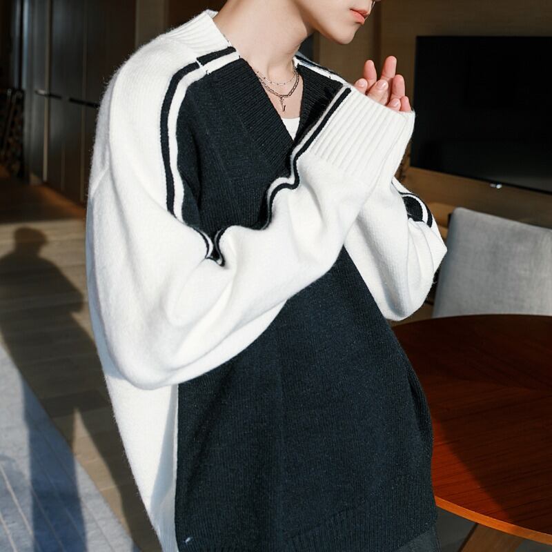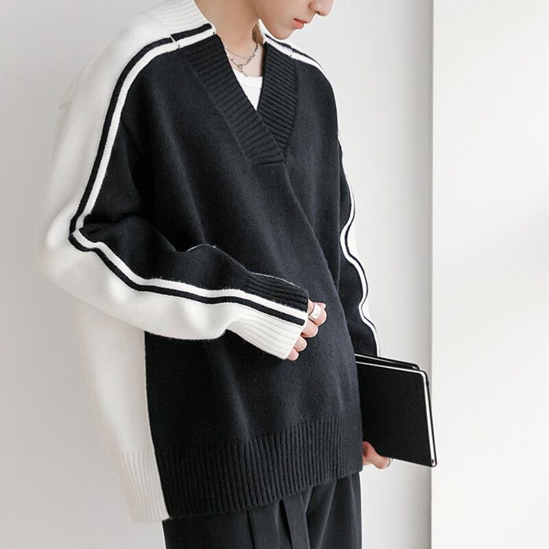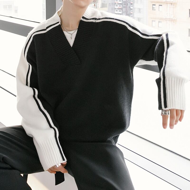 バイカラーVネックニット C10357