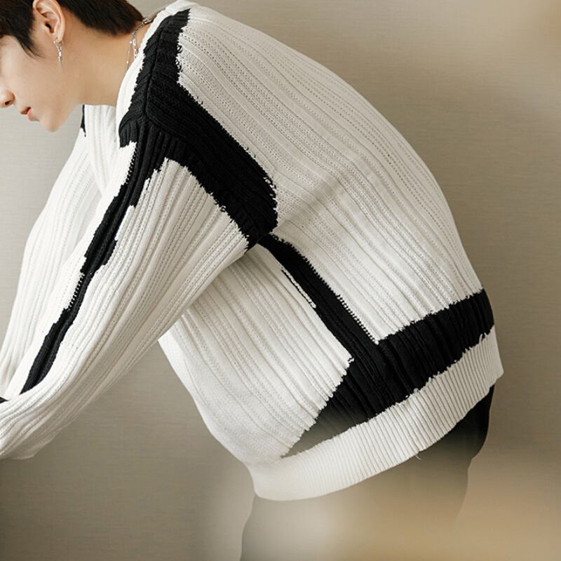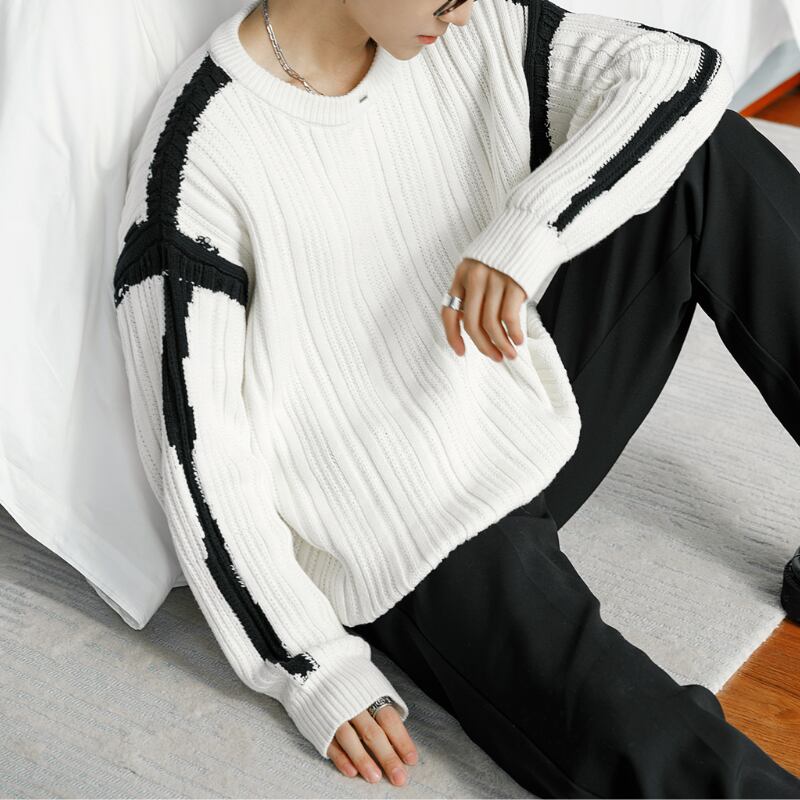 コントラストラウンドネックセーター C10301