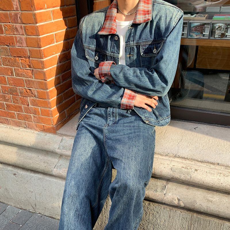裏地チェックデニムジャケット C10400