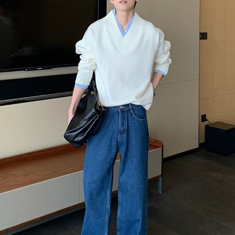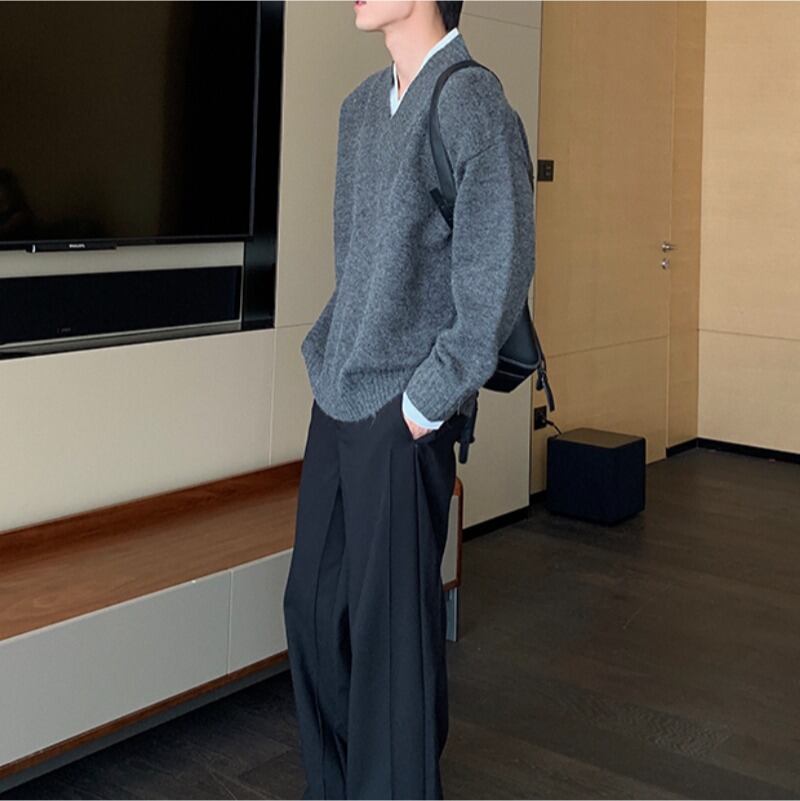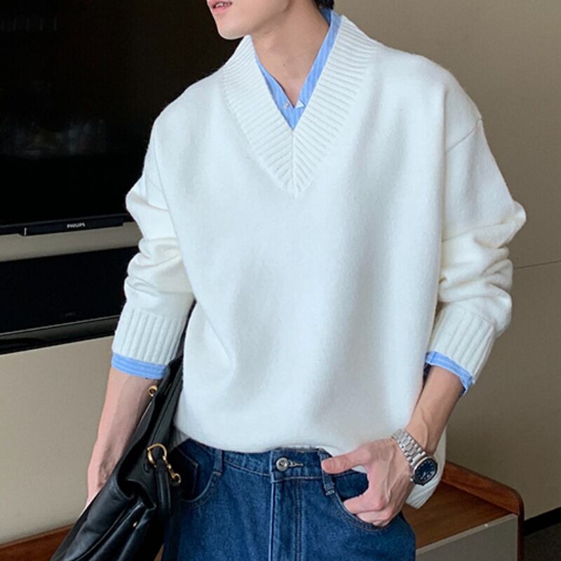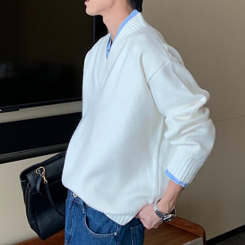 レイヤード風ルーズフィットVネックニット C10104