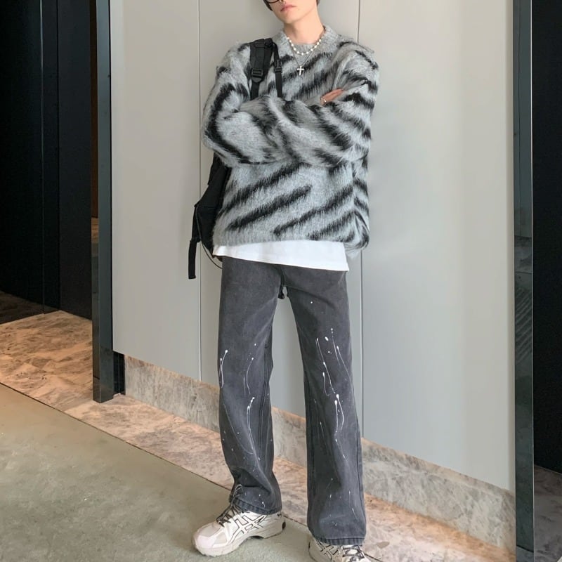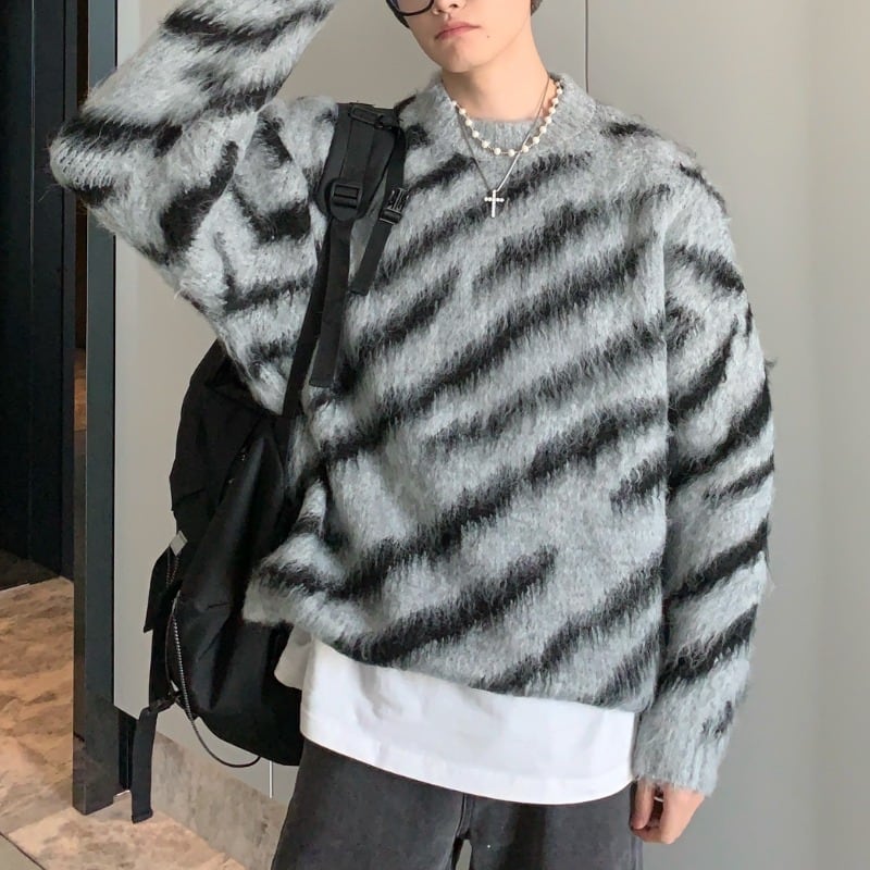ゼブラ柄クルーネックニット C10591