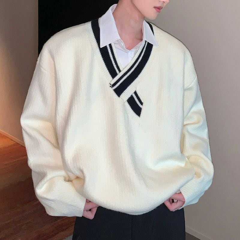 ライン入りVネックセーター C10611