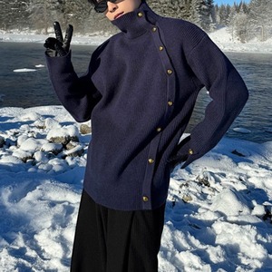 斜めボタンタートルネックセーター C10661