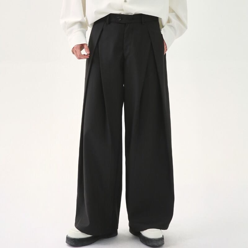 立体プリーツワイドストレートカラーパンツ C10739