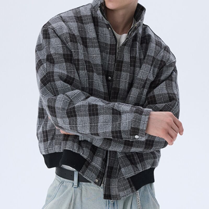 オーバーチェック柄スタンドカラーブルゾン C10729